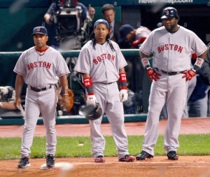Luis, Co-Host, with the Red Sox and some familiar faces: Manny Ramirez, David "Big Papi" Ortiz | ![]() |